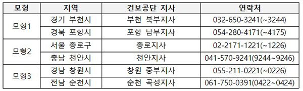 국민건강보험공단 대표번호(1577-1000) 또는 시범사업을 운영하는 관할 지사에서 전화 상담 및 문의도 가능하다.
